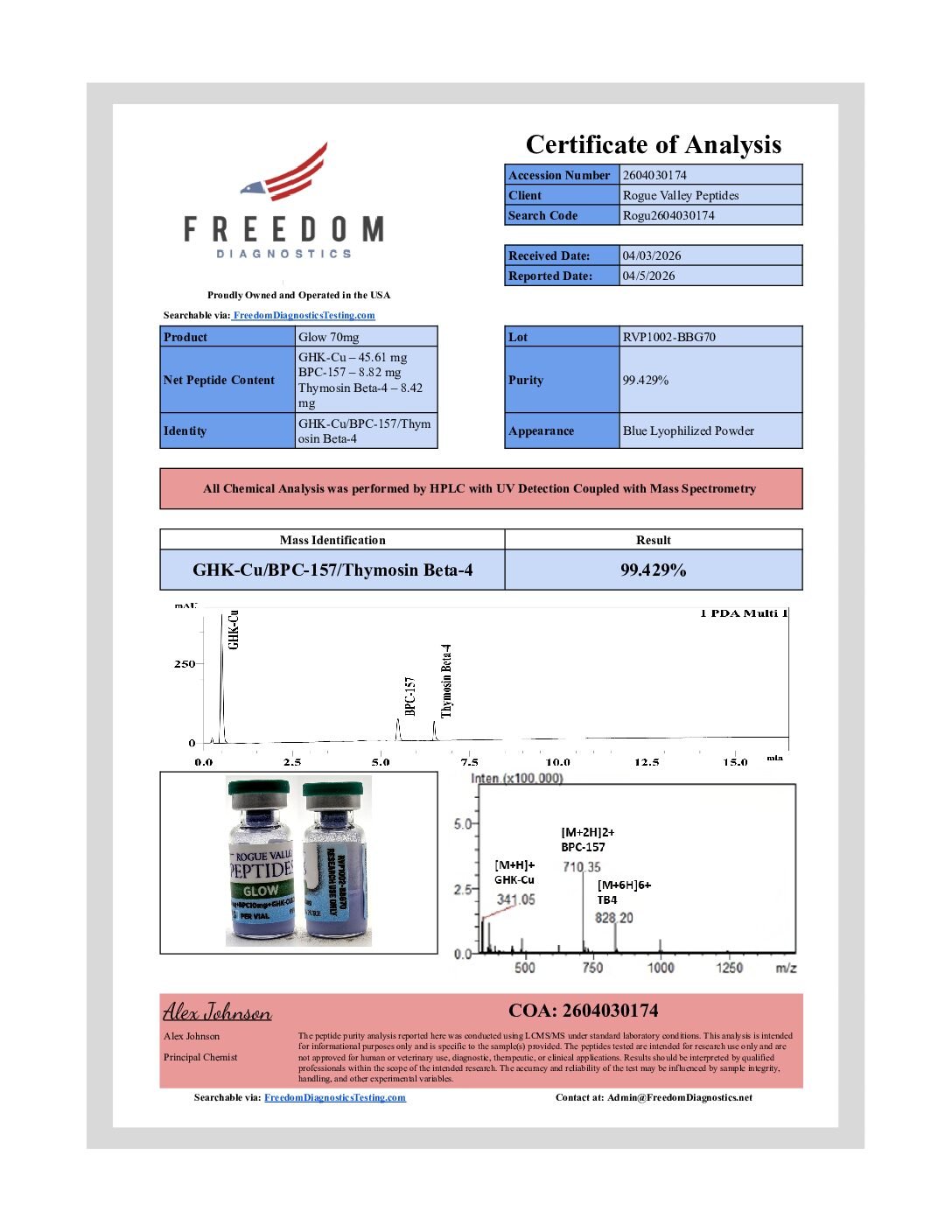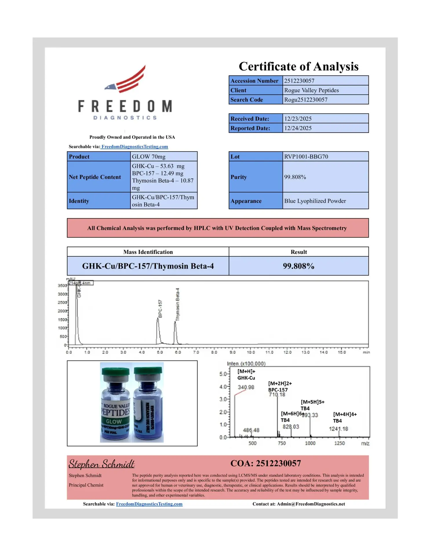 GLOW Blend: BPC-157 (10mg) / TB-500 (10mg) / GHKcu (50mg)