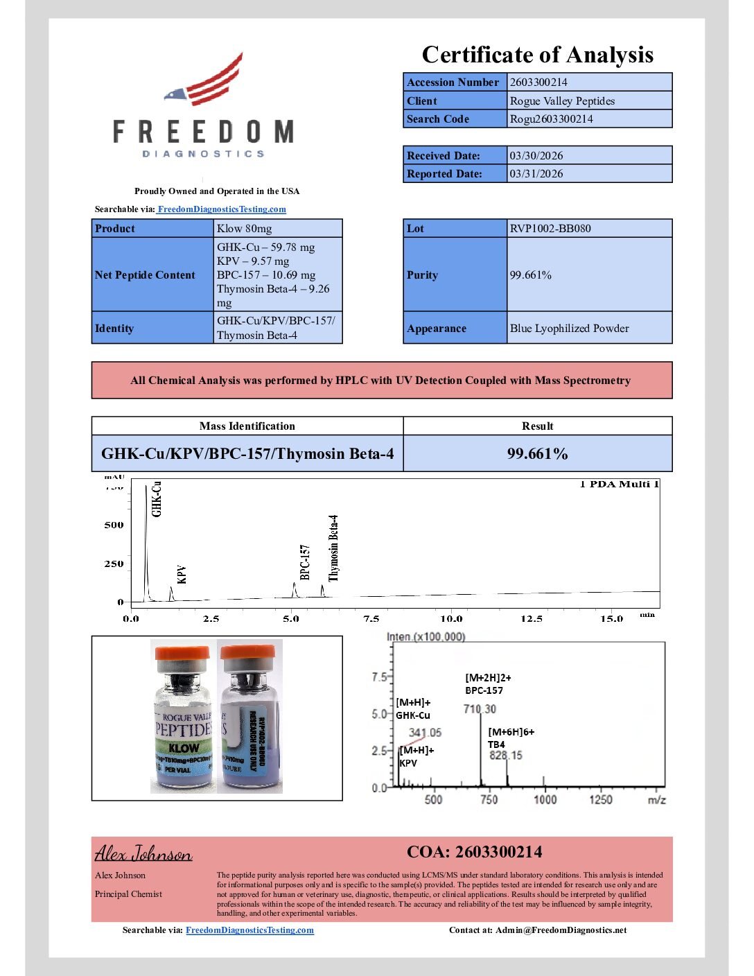 KLOW Blend: BPC-157 (10mg) / TB-500 (10mg) / GHKcu (50mg) / KPV (10mg)